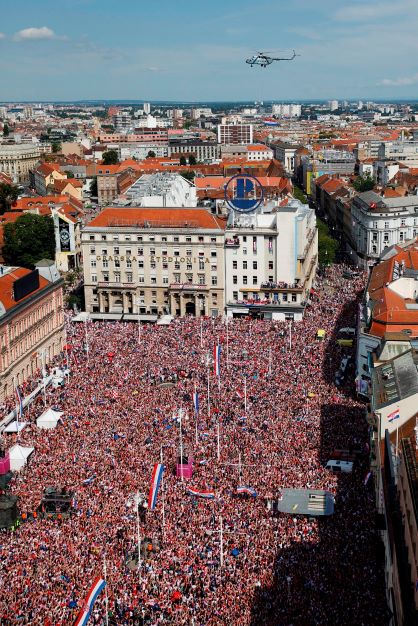 > HRVATSKA < Uvjeren sam da će u budućnosti Hrvatska biti svjetski prvak, kazao je Luka Modrić pred više od 100 tisuća navijača na zagrebačkom Trgu bana Jelačića i ok...