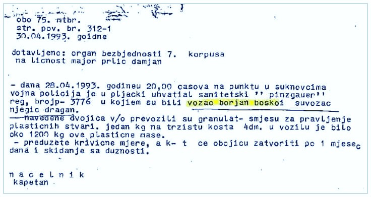 > HRVATSKA < Boško Borjan, otac Milana Borjana, golmana Crvene Zvezde i reprezentacije Kanade, 28. travnja 1993. uhićen je u Kninu zbog pljačke, a komandant 75. motorizirane brigad...